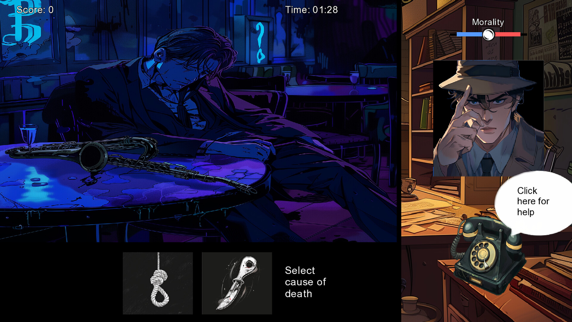 Immerse yourself in a murky point & click adventure with an anime aesthetic, where you must solve a series of murders while confronting the ghosts of your own past.In "Gloomy Clues" you'll step into the shoes of John, a detective tormented by guilt and haunted by a tragedy that pushed him to the brink. After some time away from the police force, John receives a chance at redemption: a series of cases that will force him to face his own demons and a truth that could destroy him.featuresInvestigate dark and evocative scenarios: Explore a city shrouded in shadows, where each case hides even deeper secrets.Unravel a plot full of twists: Interrogate suspects, analyze clues, and make difficult decisions that will determine John's fate.Immerse yourself in a disturbing atmosphere: Be captivated by the unique anime style and an evocative soundtrack that will keep you on edge.Confront the inner darkness: Discover the truth about John's split personality and fight to control the "Master of Illusion" before it's too late.