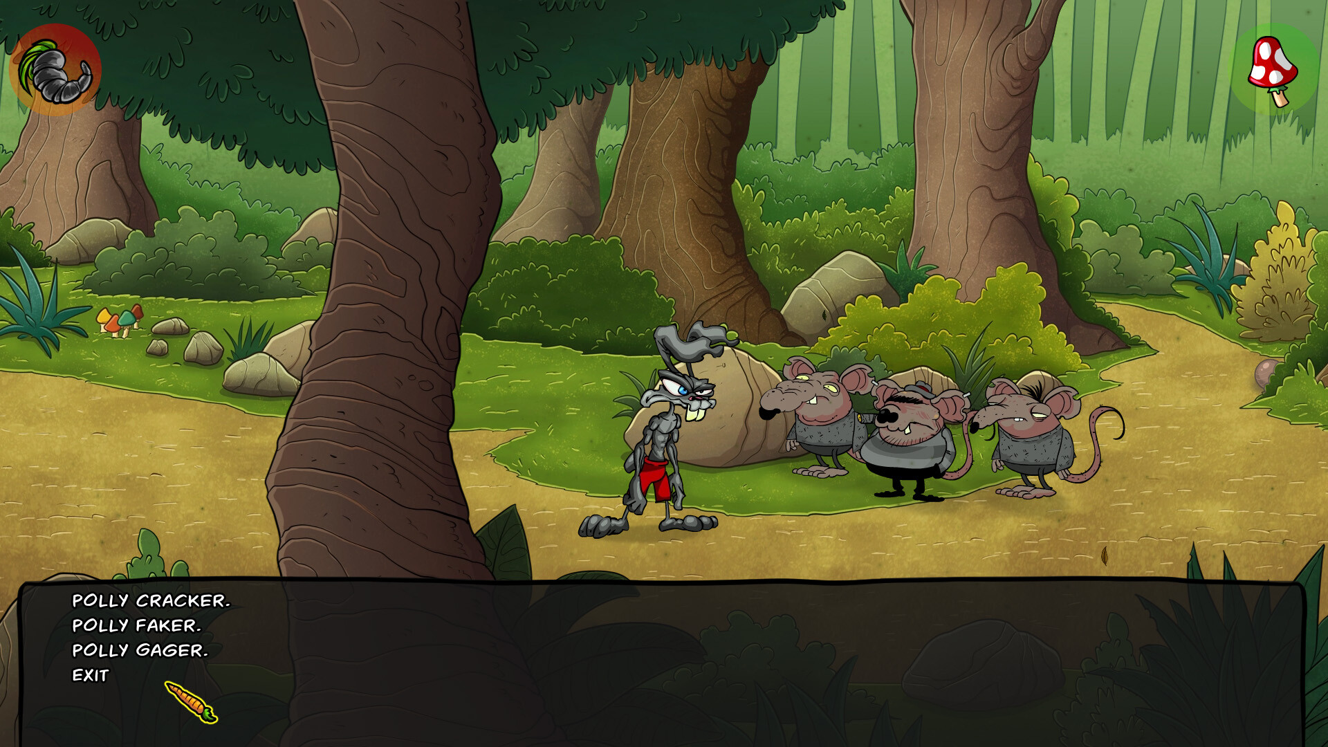 Once upon a time, there was a black rabbit with a wild temper who lived an outcast life outside the Deep Wood forest. One day, all of his special carrot crops disappeared! He embarks on a wild adventure to find the thief, using his powers of observation as well as his martial arts skills on anyone who gets in his way, even if it means taking on an entire forest!But things are more complicated than he thinks. A wacky point-and-click adventure game set in a fairy tale forest with a dark secret. FEATURES A dual inventory: One for collecting items and one for collecting skills! Beautiful 2D hand drawn backgrounds and animation. A unique story with lots of twists.Hilarious characters, featuring lot of fairytales icons. Funny situations and dialogues. Satisfying and balanced puzzles.Original soundtrack.