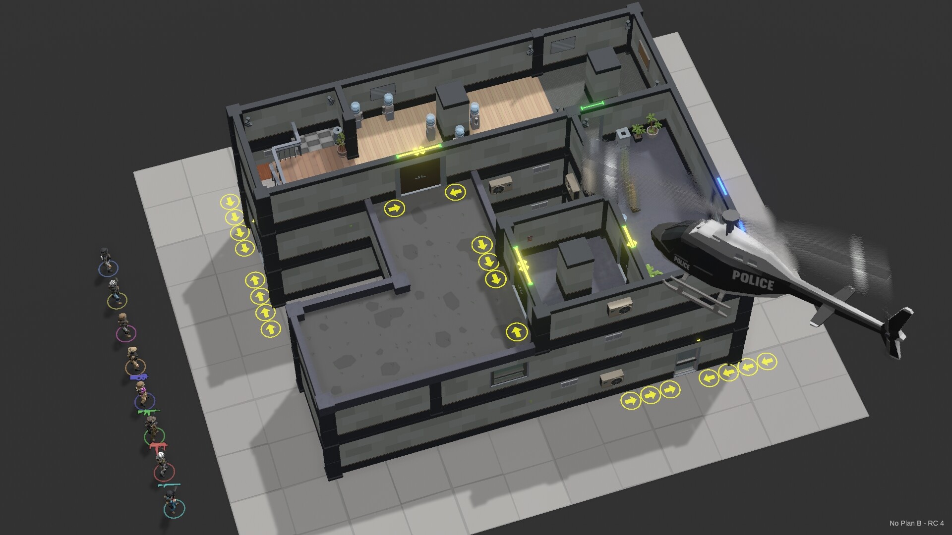 In No Plan B, every choice you make, however small, may decide the fate of your team.Assemble your squad. Work out the perfect plan. Watch it play out in real time.Study the 3D map carefully and use the innovative timeline system to move and synchronize your team.Coordinate your movements, grenades and room entries to take the enemy by surprise.One wrong move, one corner left unchecked, could be fatal to your mission - there's no plan B!Once you're confident your plan is perfect, the time has come to execute your actions and press that play button.Watch your orders unfold, and get right into the middle of the action with the full-control camera.Planned a perfect mission? Share your replays and show off those tactical skills!Hero or villain? Choose from the 4 available factions and complete different types of missions.Rescue hostages or plan a bank robbery, we're not judging.Equip the appropriate gear and fine-tune it to match your playstyle and adapt to the situation at hand.Customize your operators to elevate the tacti-coolness of your cinematic replays.Challenge yourself with multi-path rogue-like campaign: Select carefully on the map which missions you'll take and which rewards you'll need.Assemble your tactical squad, develop their individual skills, and unlock new weapons, shields and grenades as you progress through the campaign.In a rush? Take on the skirmish missions or tackle the latest daily, weekly or monthly challenge.Already completed everything? Generate new missions or create your own using the built-in editor and share it with others! Plan: Use the innovative timeline system to synchronize your every move and action and meticulously design the perfect plan. Execute: Capture and share epic replays showcasing your best tactics using the full-control 3D camera and cinematic tools. Campaign or Skirmish: Take on brutal rogue-like campaigns with units and gear management, or short but intense stand-alone missions. Infinite Replayability: Generate an unlimited number of missions, create your own using the built-in editor, or tackle challenges crafted by the community. Embrace Your Playstyle: Pick your side of the story, fine-tune the difficulty settings, and use various perks to shape your experience. Extensive Customization: Personalize your characters and weapons in detail to reflect your personal style and give your team a unique look.