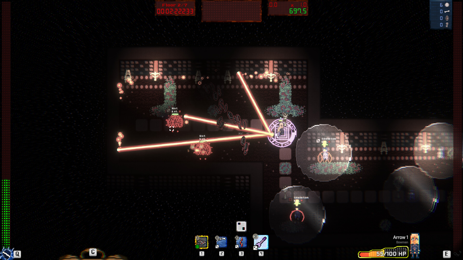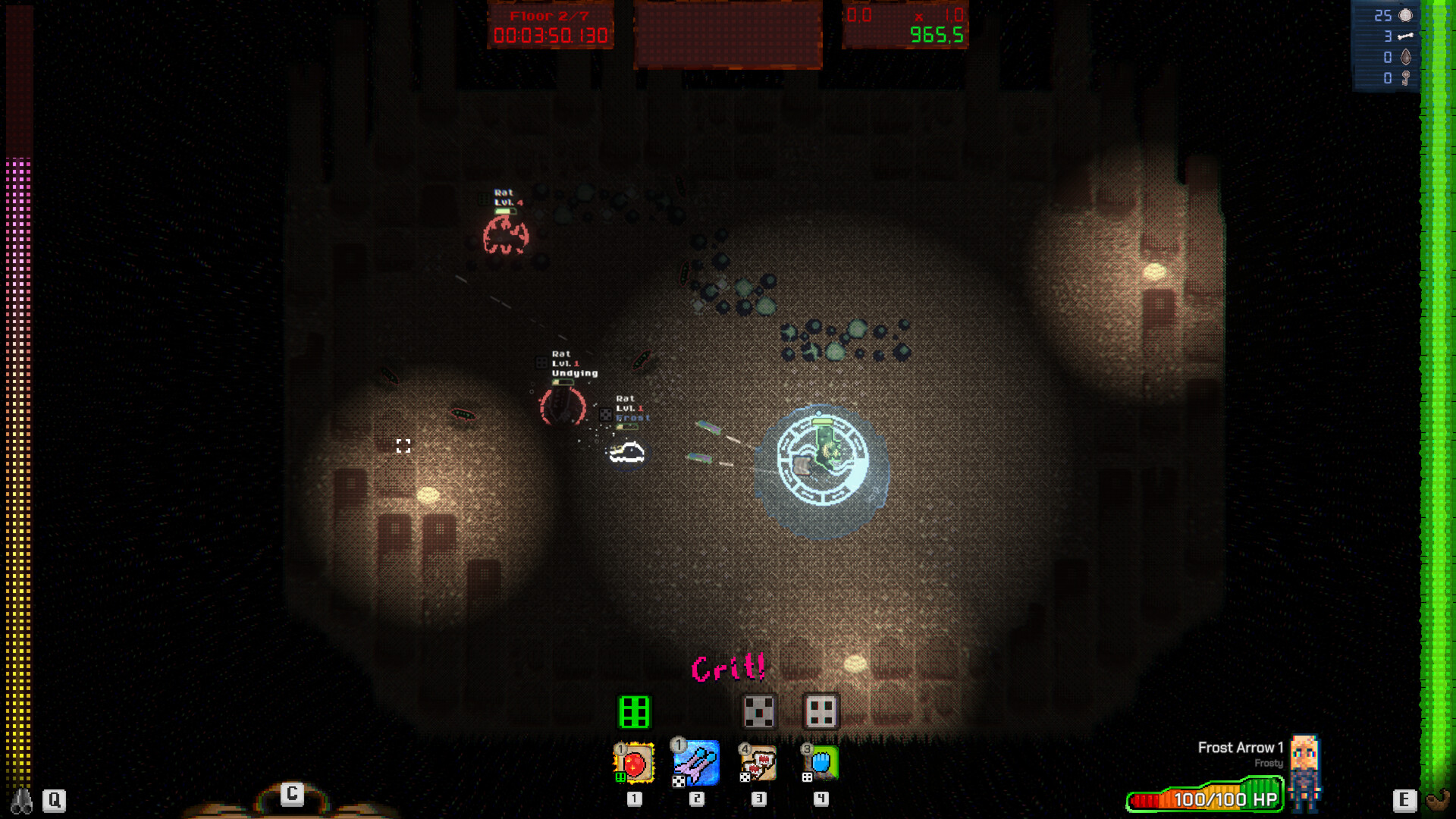Let's roll them bones!In this high-paced, action-packed roguelite you will need to carefully choose a loadout of spell dice to beat each dungeon floor. What's the deal with dice?Each die has 6 sides and possibly up to 6 different spells. Some are good, some are terrible and some will straight up annihilate the enemies (or even yourself).Choosing dice that play well against specific dungeon floors is the key to success.Interactable spellsSelect from hundreds of dice and change how they behave on Critical rolls. Go for damage, hit effects, combos or even pure chaos. Spell projectiles vary greatly in stats, effects and even their physics! Throughout the run collect rare modifiers that will further influence spell's behavior. Combine all those choices to annihilate your enemies!