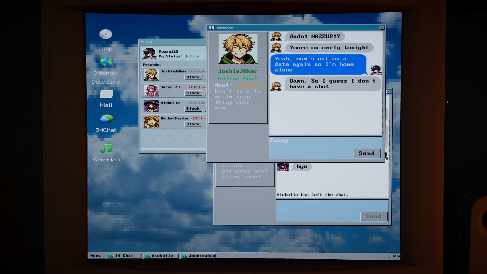 The StoryIn the quiet town of Covenbrook, a girl has gone missing. Some say she ran away, but rumors online suggest something far worse. The town has seen disappearances before, and people are becoming suspicious. But you are Rowan Parker, and you’re home alone on a Friday night. Who's going to let that stop you from playing video games, browsing the internet, and IMing with your friends all night?Ok. You can also leave your bedroom and solve the mystery if you want.GameplaySecrets of Suburbia is a story-rich, first-person mystery game that weaves horror and web exploration into it's core. You can investigate at your own pace.Key Features Explore the suburbs of 1997. Venture into a variety of locations in and around the town, from pristine homes to forgotten places. Behind locked doors, you’ll discover secrets and truths that have stayed hidden until you decide to look for them.Explore an internet of 1997. You have unlimited access to a hand-crafted internet of 1997. Find games, fandoms, secret websites, and people's real online personas at 56kbps*. At least, once you disable that firewall that mom just set up. Engage in deep, logical deduction. Discovering the truth involves utilizing every resource you have. Find keys and passwords to unlock new areas both online and offline. Infiltrate other people's accounts to figure out what's really going on.Investigate the mystery at your own pace. Curiosity leads you to find that there might be more to recent events than meets the eye. Follow any lead you can and you might discover a haunting, and unreal, truth.Forget the mystery and play video games. That's right. You aren't in any danger (most likely, anyway). It's Friday night, and there's so much happening! Sarah is playing Virtuapets, Josh is on SwordScape, and you JUST got the GameSphere for your birthday. You can forget all of what's happening and get lost online. Y2K isn't for another 3 years, anyway!* (Actually, it's a lot faster than that. Don't worry about dial-up.)