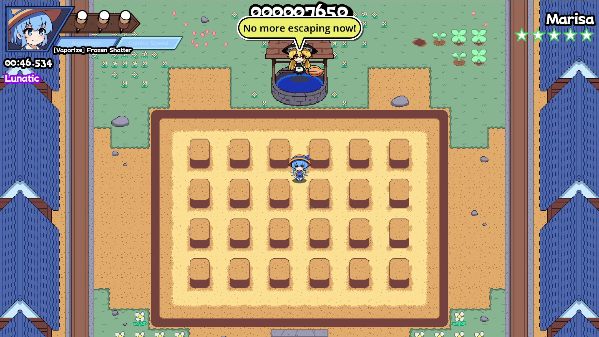 Touhou Danmaku Maze is an Arcade-like Mazeplay game in the Touhou Project Universe!But don't let the cute hand-drawn art deceive you! This game breaks the rules of traditional games mixing genres from Bullet Hell, Puzzle Routing, Arcade Action, and more! Do you think you can help the famous ice fairy Cirno on her quest to make some money in the world of Gensokyo?🌀 Four Difficulty Levels – Whether you're casual or a danmaku master, there's difficulty levels for all skill levels from Easy, Normal, Hard, and the dreaded Lunatic mode.🔥 A True Touhou Experience – At launch, you'll dive into two levels, each featuring an intense boss battle. With a planned total of six levels, we're making the ultimate Touhou experience!🎵 Dynamic Boss Music – Feel the intensity rise with multiple music tracks per level, dynamically shifting with each boss phase to heighten the excitement of battle.📖 Visual Novel-Style Storytelling – Immerse yourself in Gensokyo’s latest adventure with beautifully illustrated cutscenes before and after each level, bringing the story to life in classic Touhou fashion!Join Cirno and her loyal friend Daiyousei in an icy-cool business venture inspired by the Touhou Project series! Determined to become Gensokyo’s top snowcone tycoon, Cirno sets up shop to serve frosty treats to the locals. But as expected, things don’t go quite as planned! From mischievous customers to unexpected magical mayhem, chaos unfolds at every turn.Can you help navigate the ups and downs of running a business and sell the snowcones she put so much love into making!? A charming and whimsical adventure awaits this adorable ice fairy!Touhou Danmaku Maze redefines the maze genre by thinking outside the labyrinth—literally! Instead of hazards confined within the walls, the danger comes from beyond, unleashing a relentless barrage of danmaku (bullet hell patterns) that force you to weave, dodge, and strategize your way to victory.This game puts a heavy emphasis on high-speed, precision-based gameplay with a strong speedrunning focus. Master the art of routing, experiment with different paths, and find the most efficient way to clear each stage in record time. Every second counts—can you outmaneuver the chaos and claim the best time?
