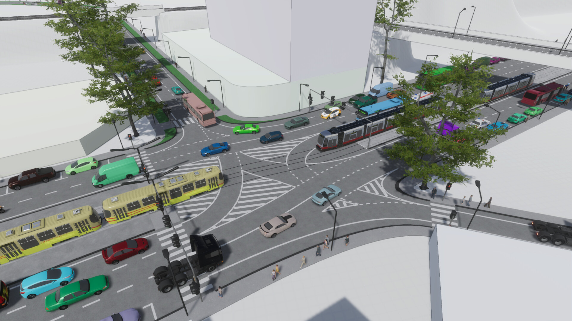 Take on the challenge of traffic management with the comprehensive simulation and management systems of Junxions, where you’ll finally be able to solve the problem of gridlock once and for all. Devise interchanges unlike anything the world has ever seen, leveraging and working around the constraints of real traffic laws and systems to meet the demands of metropolitan municipalities. Build utopias of smoothly flowing roundabouts and bypasses, or employ the classic method of simply adding more lanes – the choice is yours!From single lane one-ways to six-lane monstrosities to dedicated bus lanes, bike lanes, and tram tracks, Junxions will present a multitude of options – it's up to you to decide how they come together. Plan routes around existing structures, relying on tunnels and bridges as necessary, plotting paths from where people are coming to wherever it is they need to go. Establish rules for intersections, determining not just the phases of individual traffic lights (if any are present in the first place), but also designating lanes for specific purposes as you see fit and introducing limitations as needed. Establish rights of way, create pedestrian islands and medians, and even place street lamps, railings, noise-cancelling barriers, and additional decorative elements to bring your spaces to life. A unique set of tools are at your disposal, purpose-built to allow for the fine-tuning of every aspect of your roads and the intersections between them. The game's challenge mode takes you from handcrafted map to handcrafted map with different pre-existing conditions, roads, and traffic problems to solve. Plot out your roads to maintain a consistent flow of traffic, prevent gridlock, and ensure average speeds are kept above a certain minimum, all while maintaining a reasonable budget. As the challenges go on, you'll take on the difficulties presented by additional vehicle types as they share the road with each other and pedestrians, introducing the need for more and more complex solutions to meet the demands of commuters. In sandbox mode, meanwhile, you can either build from the ground up to experiment on completely blank maps, or you can explore real-world challenges!Do you live in a city with terrible gridlock? Is there a specific intersection that you just know you'd do a better job designing? Simply provide coordinates to import any real-world location from around the globe and get to solving the local traffic issues. Start with a clean slate to establish new roads, introducing new dedicated lanes, or simplifying needlessly complicated intersections. Recreate existing roads as they are to then see how incremental adjustments can improve or degrade the flow of traffic in unexpected ways. Reinvent iconic junctions to see how they change the face of familiar cities – how does the Arc de Triomphe look without its famous roundabout? Can Shibuya function as a turbo roundabout with pedestrian bridges instead? Can LA traffic actually be fixed?Age-old problems often call for creative new solutions! With access to individual pathing tools for roads, tracks, pedestrian walkways, and bus lanes, you can choose to refine the familiar, or experiment with a multitude of non-conventional approaches to find revolutionary new solutions instead – who says pedestrian walkways don’t belong between two sets of train tracks? The intersection algorithm in Junxions will adapt to your intentions as you specify each intersection’s size, type, and exact placement – push the boundaries of traffic engineering as you seek the slightest increases in throughput. Junxions will launch with full support for modding – build maps to challenge other members of the community, share your traffic solutions to see if others can further refine them, and even import custom models into the game to add real-world vehicles and props to your maps. If you've ever wanted to dive deep into the world of traffic engineering, Junxions is the perfect opportunity to do so without the distraction of zoning laws and citizen satisfaction. Design solutions to complex problems, stress test them using advanced traffic simulations, and refine them to perfection for your own satisfaction.