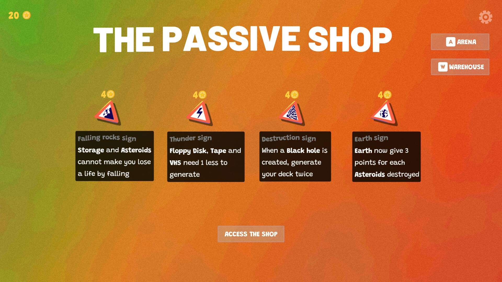 Steve is a busy alien and they must collect and sort out human fruits, animals, storage or even planets. To do so, Steve will combine the same objects to create better objects, make more points, and make more money! Discover the ultimate physics deck-builder: Suika meets RoguelikeSteve's Warehouse is inspired by the Watermelon game (Suika game) and rogue-like deckbuilding games (such as great games like Peglin, Luck be a Landlord or Balatro). Physics will do its thing, creating both the most satisfying and the most funnily frustrating situationsExperiment with object families and their strange effectsStrange effects include animals that eat fruits, strange letters that rotate, and sports balls that create objects when they touch a wall. Each of the 8 families works singularly around physics or other objects!Spice things up with passivesWith more than 40 unique passives, discover various combinations to have a crazier effect:Transform every object into a car, make every object rotate, win points when using a bomb or TNT...Survive bosses and ChallengesEach arena has a boss with a special effect to give you one last challenge before finishing the game. Additionally, discover 7 unique challenges changing the game rules entirely! What to expect?8 object families, including Fruits, Animals, Celestials, Transportations, Storages or even Sports balls70+ objects, each with a dedicated physics, effect, and points!40+ passive objects that will let you create unexpected combos 7 different arenas changing the difficulty8 bosses to survive7 challenges to play the game in unexpected ways